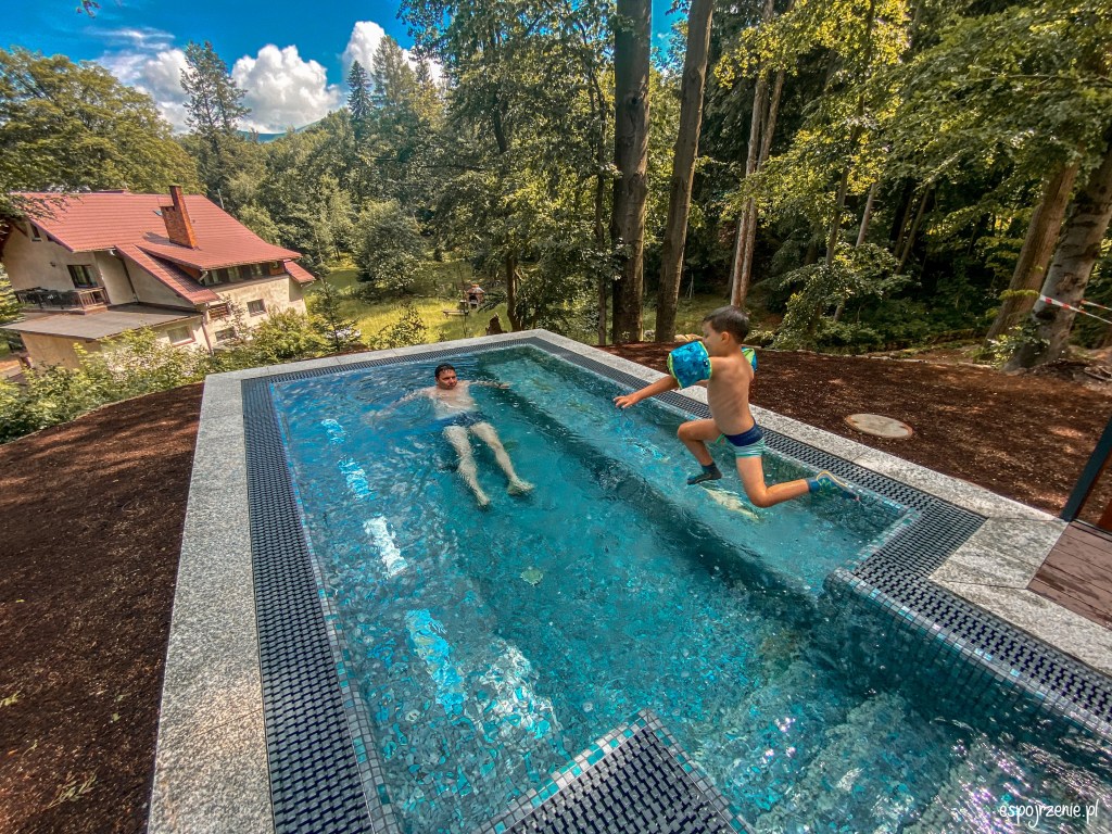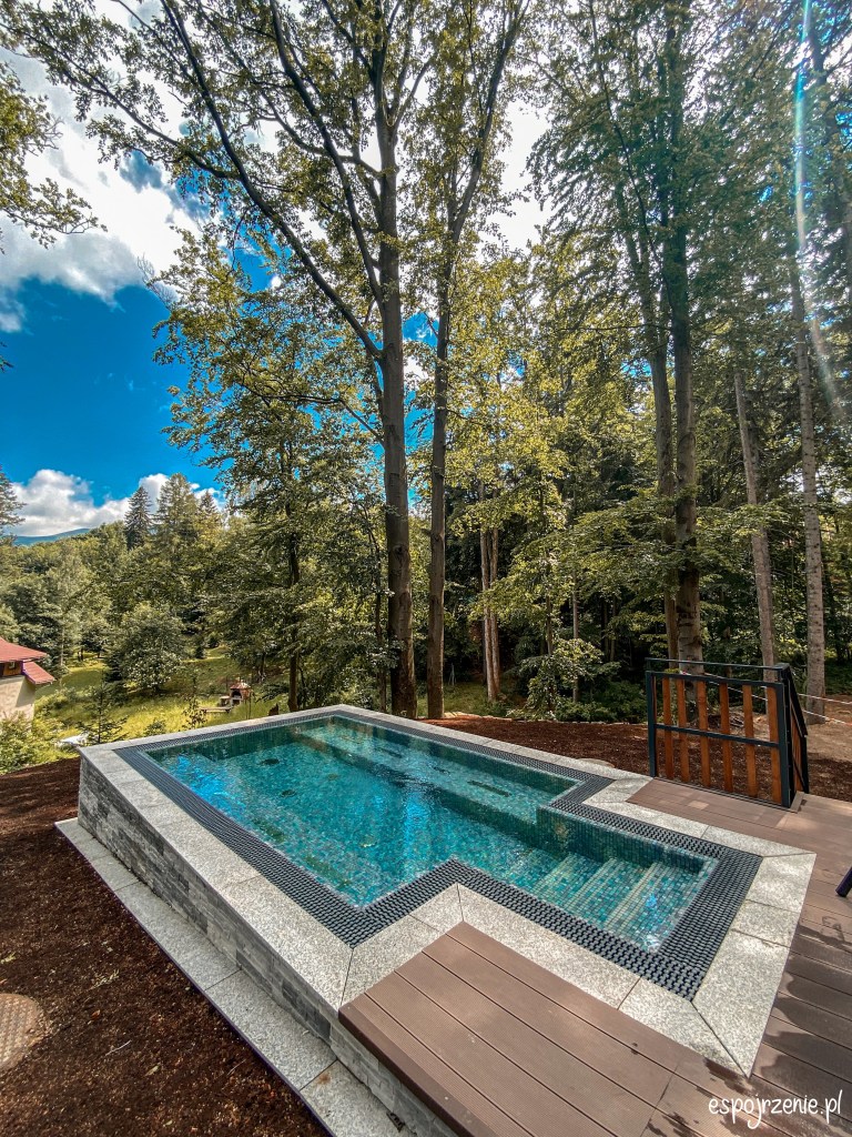 – ciekawe zewnętrzne jacuzzi wśród drzew