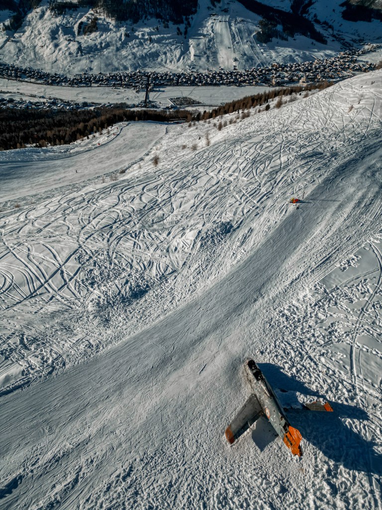 Bazując na moim tygodniowym doświadczeniu mogę polecić Wam zdecydowanie Mottolino, wg mnie było ciekawsze od przeciwnego Carosello3000. Na Mottolino znajdziecie też atrakcję turystyczną – wark samolotu 🙂 Skąd wziął się samolot na stoku narciarskim ? samolot, a dokładnie wrak maszyny szturmowej Fiat G.01R/1 służył we włoskich siłach powietrznych od 1958-1995. Obecnie atrakcja na stoku zjazdowym, można zasiąść za sterami.