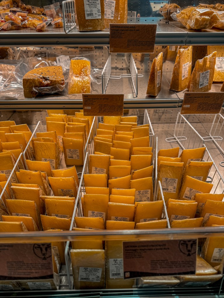 – Latteria di Livigno – czyli lokalna mleczarnia, która produkuje nabiał dostępny w każdym sklepie w okolicy. Na miejscu działa restauracja w której znajdziecie coś na lunch, ale przede wszystkim deski wyśmienitych serów oraz lokalne wino, a na deser wytwarzane tam włoskie gelato !