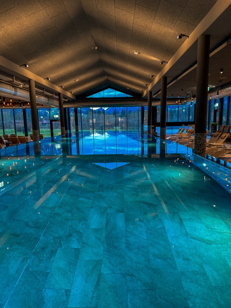 – spora strefa SPA z basenem o długości 20 m, brodzikiem, jacuzzi, saunami oraz basenem zewnętrznym z widokiem na góry