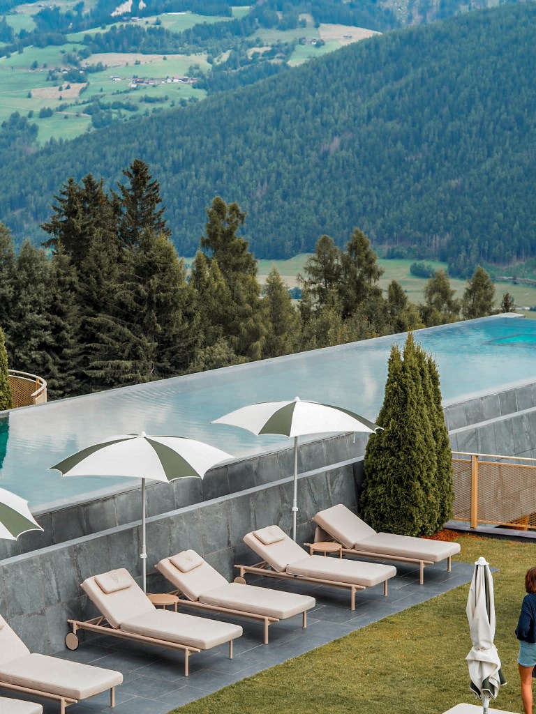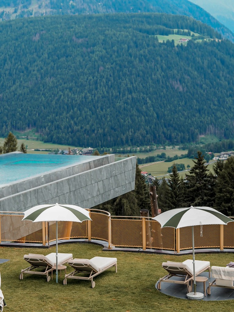Hotel został wyremontowany w 2022 roku, wszystko jest dość nowoczesne, utrzymane w górskiej stylistyce. Znajdziecie w środku, basen wewnętrzny, zewnętrzny, strefę saun, SPA, kids club czy narciarnię. W podziemnym garażu stanowiska do ładowania aut elektrycznych w cenie. Z naszego pokoju roztaczał się niesamowity widok na okolicę, ale były też dostępne apartamenty o większym metrażu z aneksem kuchennym. Każdy pokój wyposażony jest w plecak włoskiej marki Salewa, który można wziąć ze sobą na górską wyprawę.