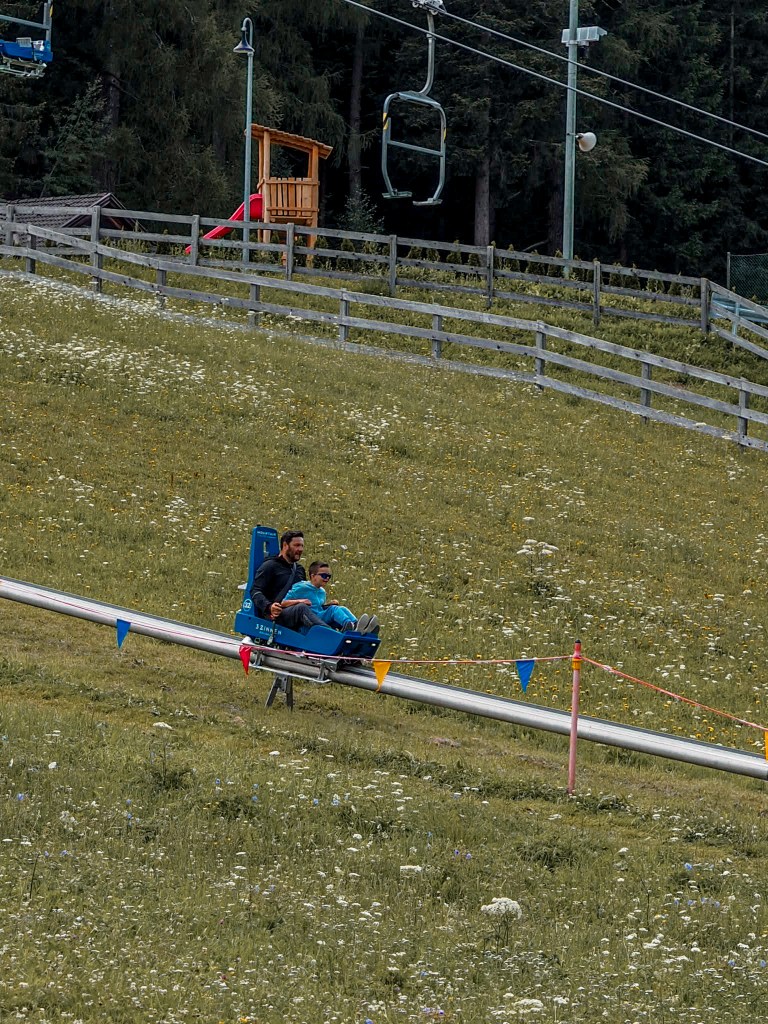 Z uwagi na krótki pobyt oprócz jeziora byliśmy tylko jeszcze w miejscowości Innichen na zjeździe na tzw. sankach. Jest to tego typu najdłuższy zjazd w Południowym Tyrolu – tory maja długość 1739 metrów, a max prędkość jaką możecie rozwinąć to 40 km/h. Aby skorzystać z tej atrakcji musicie zakupić bilet na wyciąg krzesełkowy (4 os kanapa), a następnie na sam zjazd. Emocje gwarantowane 😊