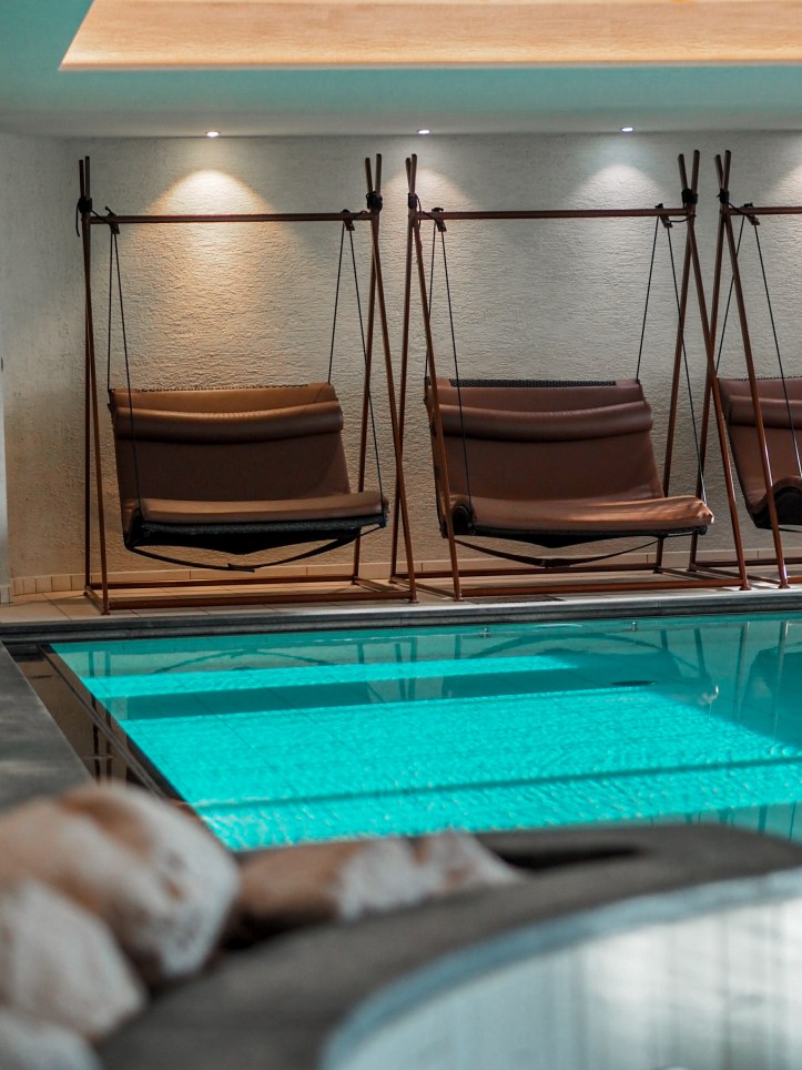 Z balkonu naszego pokoju oprócz doliny widać było Hotel Hubertus. Myślę, że ten obiekt znany jest sporej części osób. Zachwyca designem jeśli chodzi o basen jak i strefę saun, zobaczcie sami: