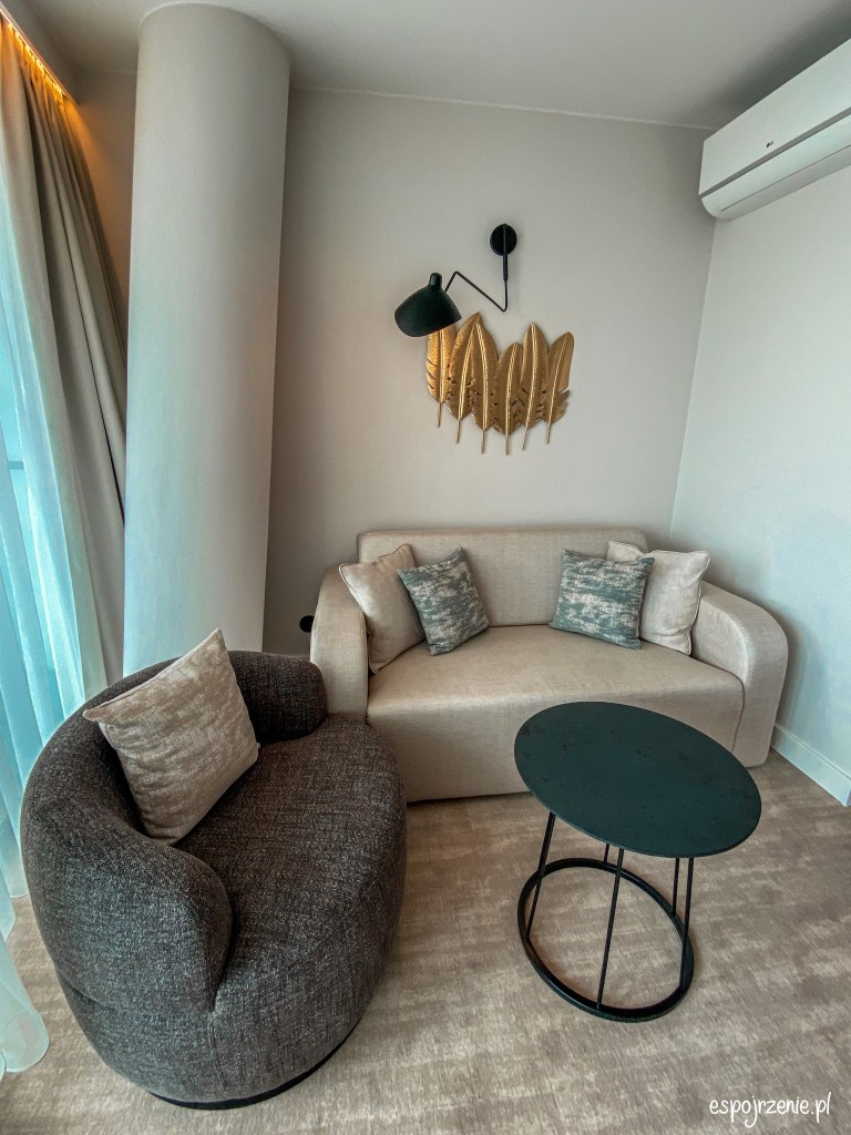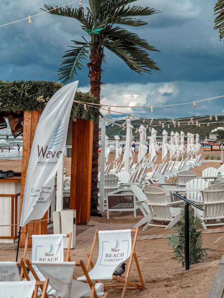 Z kompleksu mamy zaledwie rzut kamieniem na plażę, na której znajduję się Wave Beach Concept. Stylem nawiązuje do hotelu, utrzymane w jasnej kolorystyce. W beach barze można wynająć leżaki tudzież piętrowe łóżka balijskie. Do dyspozycji gości jest również karta z przekąskami oraz ciekawe drinki. Sam beach bar utrzymany jest w tzw. instagramowym stylu 🙂