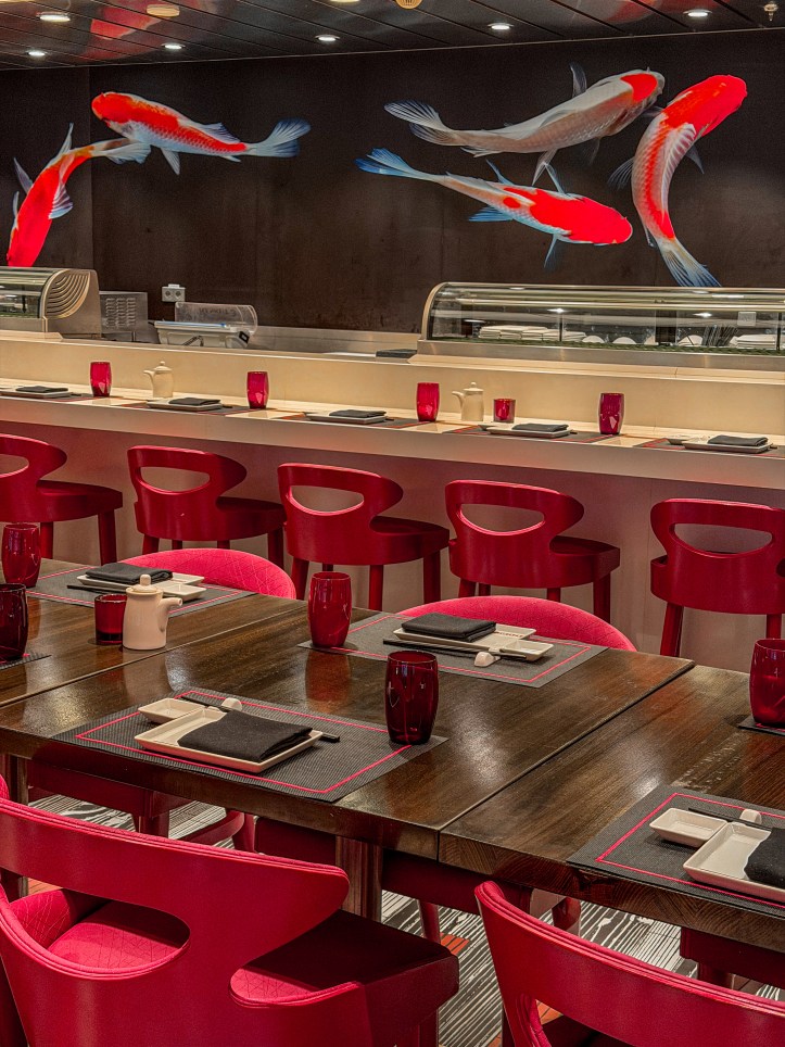 Spektrum kulinarne obejmuje restaurację bufetową Windjammer Marketplace. Tutaj również duży plus za regionalizację tej kuchni. Na MSC pływaliśmy w trzech miejscach na dwóch kontynentach i jedzenie było dokładanie takie samo. Tu na Spectrum of the Seas widać było wpływy azjatyckie, więc oferta kulinarna była dostosowana do każdego gościa. Kolacje serwowane były w trzech turach w restauracji mogącej pomieścić ponad 1 800 osób. Polecamy szczególnie ślimaki oraz key lime pie 🙂
