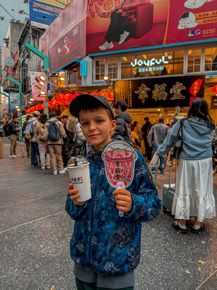 Dzielnica Ximending to kolejne miejsce gdzie powinniście się udać. Znajdziecie tu mnóstwo sklepów oraz restauracji czy street foodu. Na pewno wypada spróbować buble tea, w końcu z tego miejsca się wywodzi. Podobno najlepsza to ta z Xingfu Tang, przyznam, że faktycznie była to najlepsza wersja tej słynnej herbaty jaką piłam, więc miejsce nie jest przereklamowane.