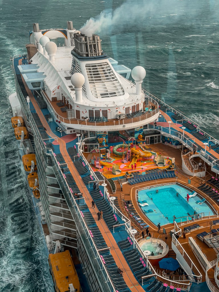 Na gości czeka wiele atrakcji m.im. Sea Plex, czyli miejsce gdzie pogracie w piłkę czy pojeździcie na bumper cars. Można również strzelać z łuku czy wspinać się po ściance. Podczas naszego rejsu była możliwość za 10 USD/os uczestniczyć w bitwie na laserowe pistolety. Dodatkowo na rufie znajdziecie symulator surfingu czy tunel aerodynamiczny. Szklana kapsuła North Star zabierze Was na wysokość 90 m. Klasycznie jak na każdym statku mamy teatr, ale tutaj warto wspomnieć, że poziom niektórych przedstawień teatralnych wyróżniał się na tle innych statków. Wspominamy ‘The Effectors’ gdzie wykorzystano grę świateł, lasery, nowoczesne technologie czy nawet drony.