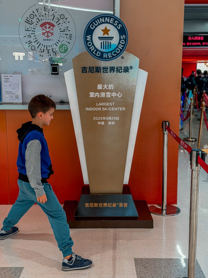 – hala narciarska (Huafa Snow World) – nawet jeśli nie jesteś zapalonym narciarzem to warto wiedzieć, że obecnie w Shenzhen znajduje się największy całoroczny resort narciarki na Świecie. Miejsce to oferuje 5 stoków o łącznej długości 1,5 km. Różnica wzniesień to 83 metry. Ośrodek został otwarty pod koniec września 2025 i zajmuje 100 000 m². W cenie biletu macie sprzęt jak i kompletne ubranie. Możecie zakupić karnety (najkrótszy 3h) o różnym stopniu trudności, ten najbardziej zaawansowany działa na wszystkie wyciągi – warto o tym pamiętać. Stok otoczony jest galerią handlową, gdzie znajdziecie pełno profesjonalnych sklepów narciarskich z bieżącą kolekcją, jest co oglądać 😊