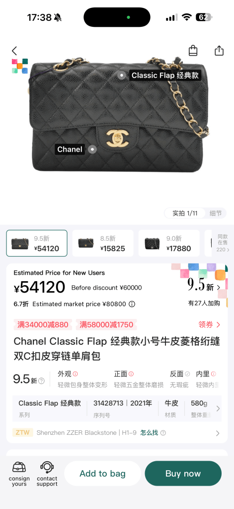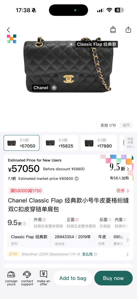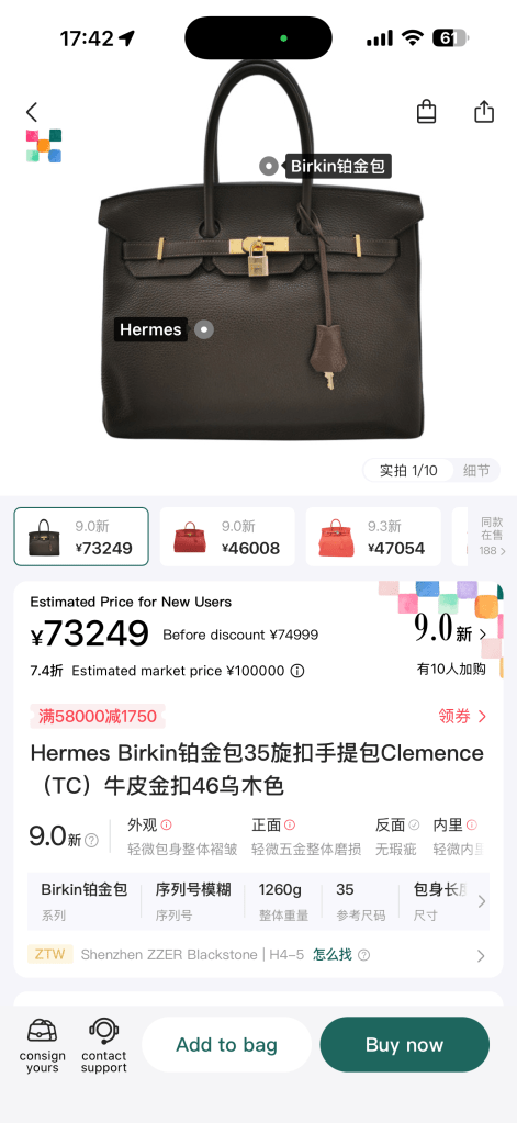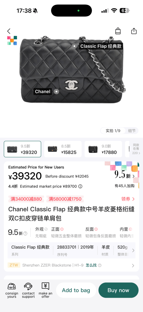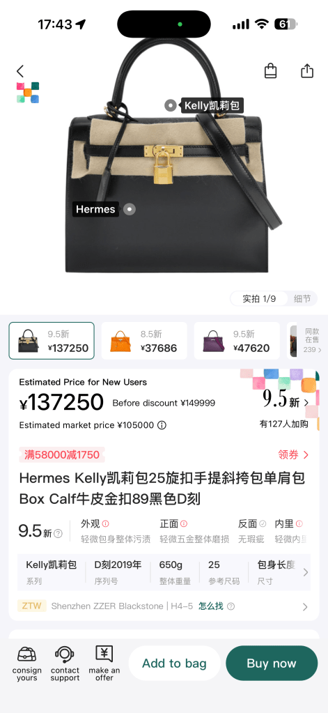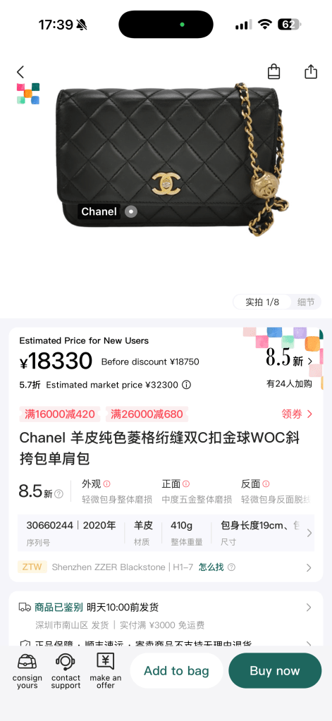 – Zeer – sieć butików z vintage torebkami oraz ubraniami czy akcesoriami. Jeśli marzy Wam się torebka od Chanel, Hermes czy też Dior albo LV polecam zajrzeć do tego miejsca. Na wstępnie zainstalujcie aplikację WeChat, przyda się do skanowania cen oraz wyświetlania informacji o danym produkcie. Wszystkie rzeczy zostawiacie w specjalnej szafce, którą też otwieracie telefonem, a na wejściu zakładacie rękawiczki, takie bez jednego palca, który przyda Wam się do obsługi telefonu 😊 Wielość produktów przyprawia o zawrót głowy, ogólnie są w bardzo dobrym stanie, są też takie wręcz nowe. Podobno można się targować. Poniżej przykłady cen.